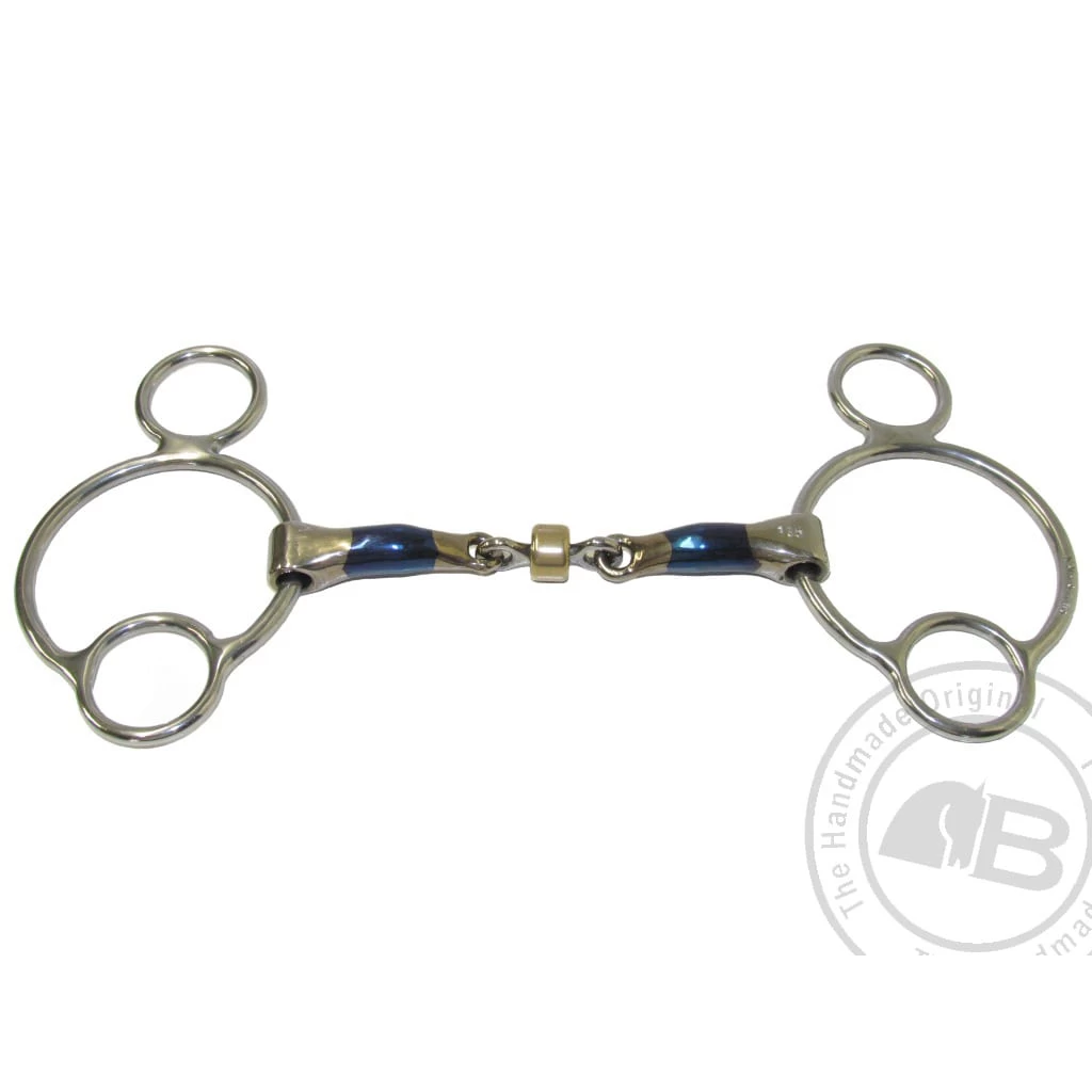 The Buster Roller link in the middle is shortened to 40mm which increases bar and tongue pressure making the bit sharper than conventional link bits. The increased pressure on the bar will lift the head and the roller will increase pressure on the tongue bringing the chin in. Best suited for a horse with a low head carriage and which leans on the bit.