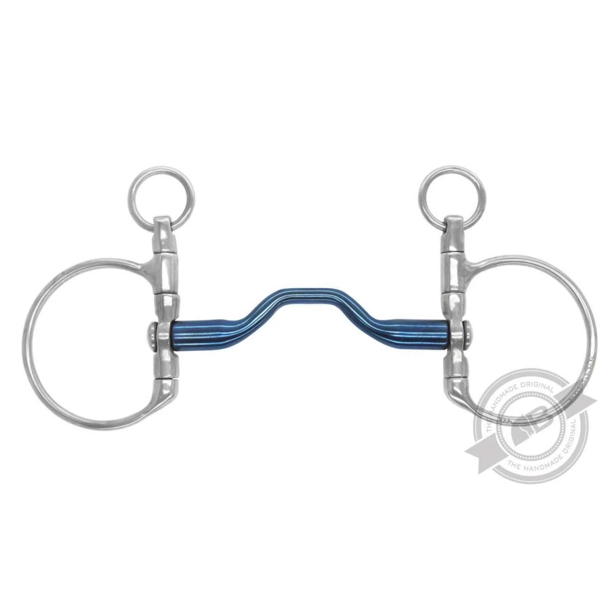 This cheekpiece was designed to work with a solid ported mouthpiece that swivels, so it can naturally adjust with the horses movements, maintaining a comfortable position.