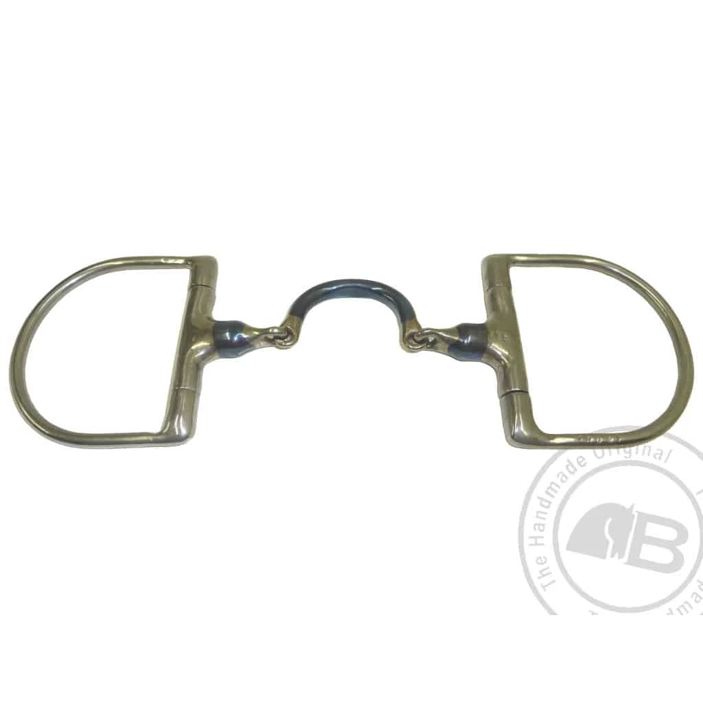 The Dee Ring is very similar in action to the Eggbutt, it will prevent pinching of the lips and gives a slightly more solid feel against the side of the face. It also prevents the bit being pulled through the mouth. The release is slower and some slight poll pressure is introduced.