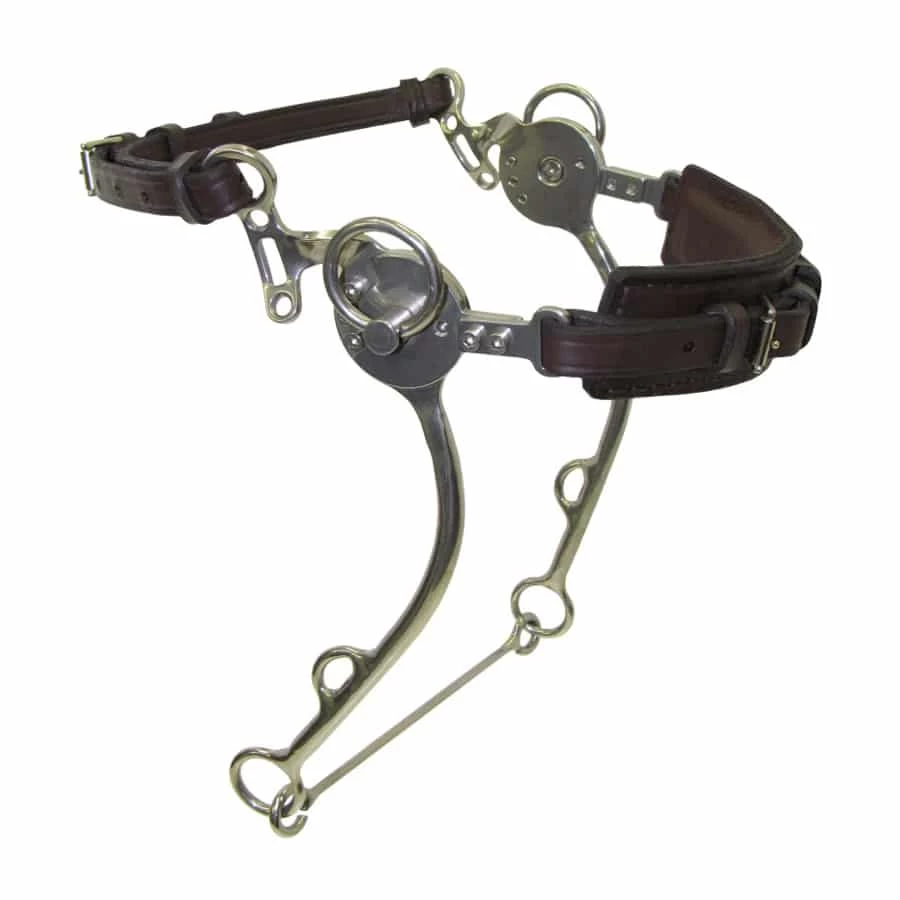 The BT is a cam style hackamore. It allows for 4 settings:Â