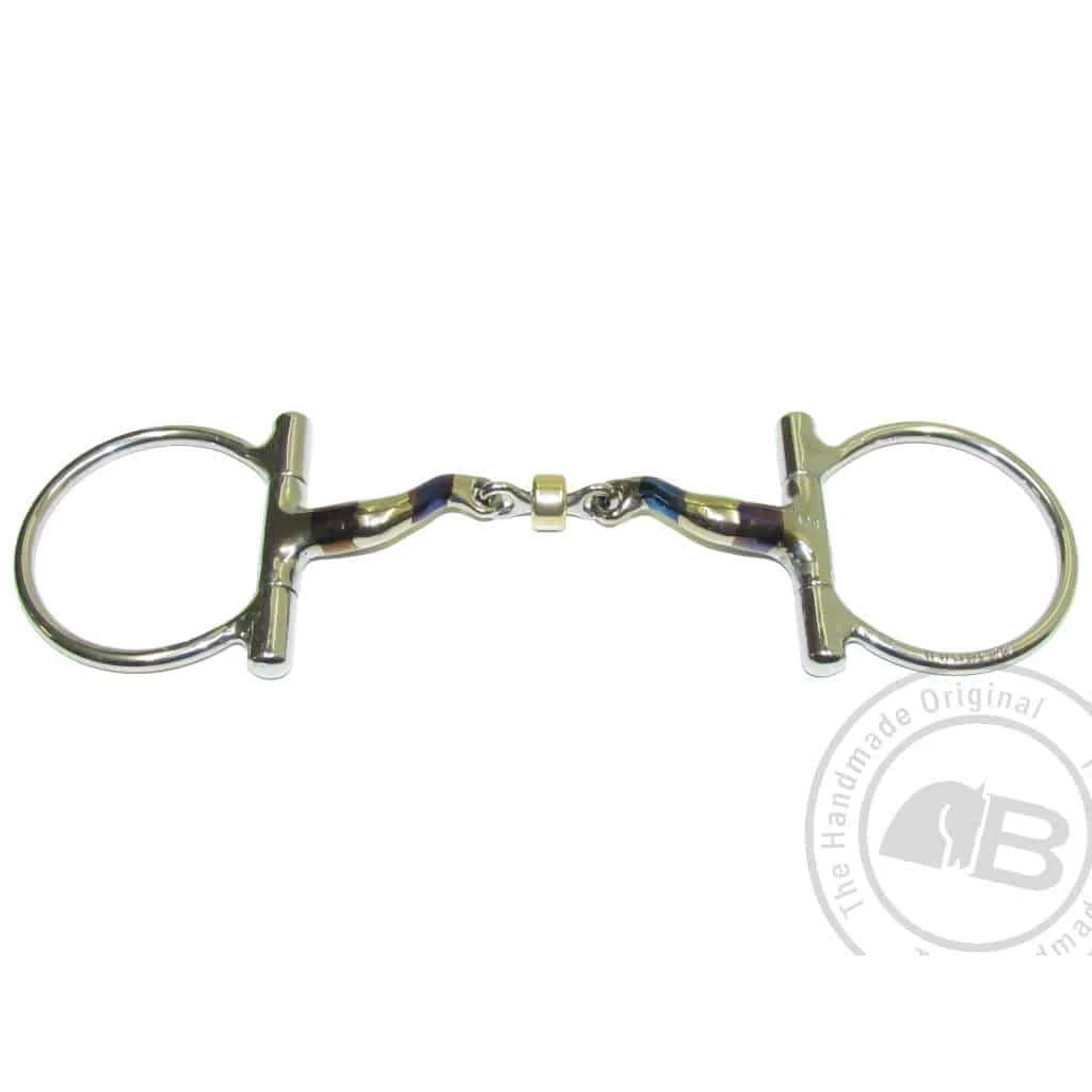 The Dee Ring is similar in action to the Eggbutt, it prevents pinching and gives a slightly more solid feel against the cheeks. This prevents the bit from being pulled through the mouth. The release is slower and some slight poll pressure is introduced. The mouthpiece does not slide on its ring resulting in light poll pressure. The cheek pieces lie flat against the horse’s face, and the mouthpiece is quite fixed in the mouth and concentrates pressure on the bars.
