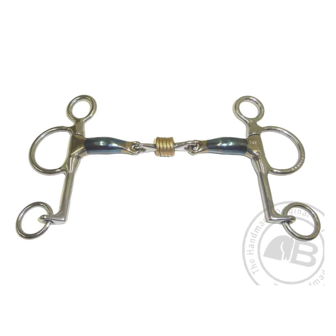 The Colin Miles is a great schooling bit with a wide center piece creating greater tongue pressure and reducing bar pressure. The rings give the horse something