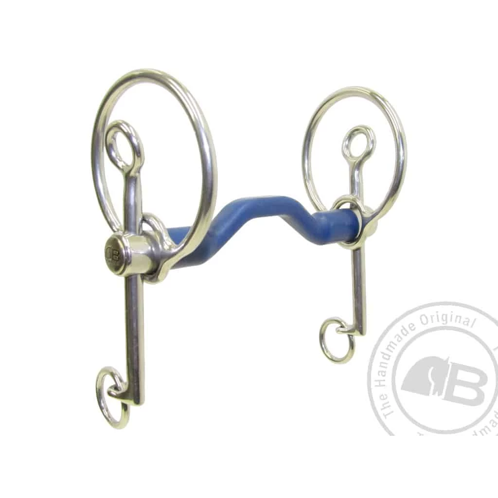 The Bomber Blue is a unique bit which produces amazing results for the majority of horses. The mouthpiece is ported to give tongue relief. The nylon composite material is light in the mouth and encourages salivation. It is particularly well suited to horses that object to metal mouth pieces.