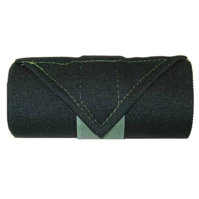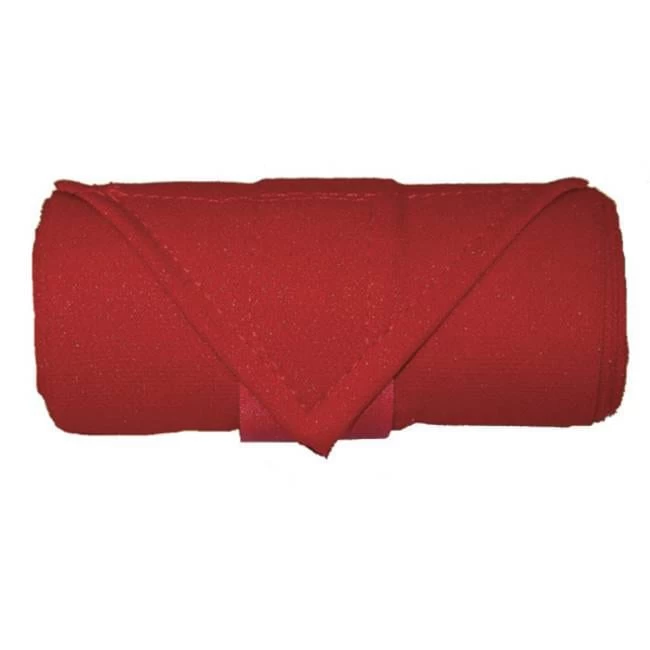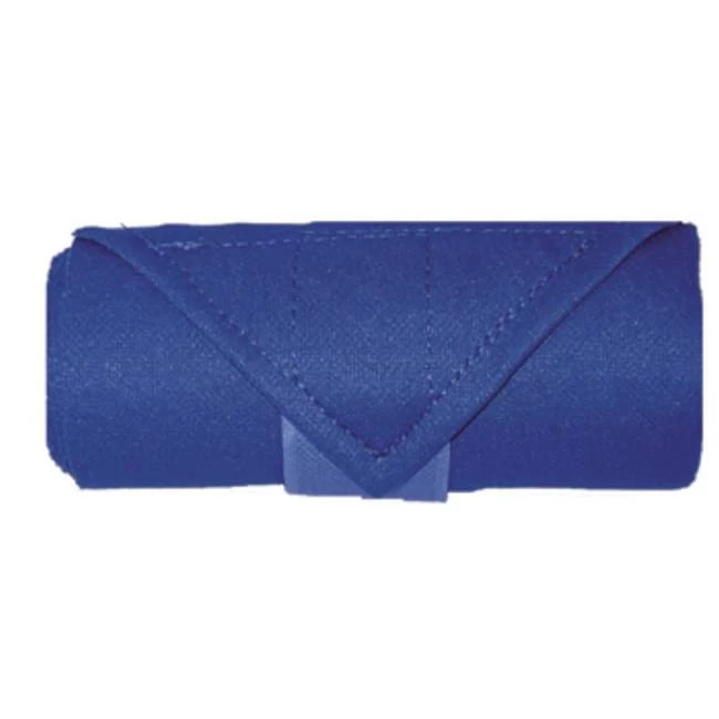Made from double-knit polyester. Heavy enough to withstand repeated use, yet light enough to breathe and keep legs from overheating. The fabric has give, yet unlike elastic, it can’t bind too tight. Made for daily washing, and features a Velcro closure.