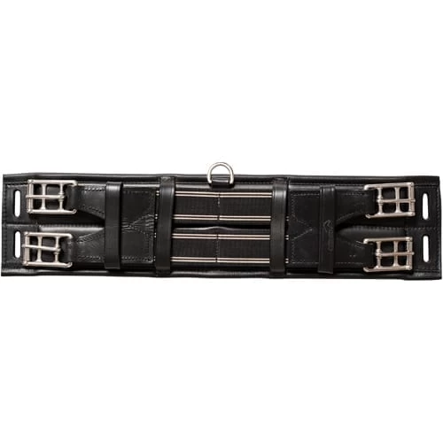 Leather girth for Icelandic horses made of high quality European leather. The girth has an elastic centre part to avoid an uneven pressure on the horse. Stainless steel roller buckles.