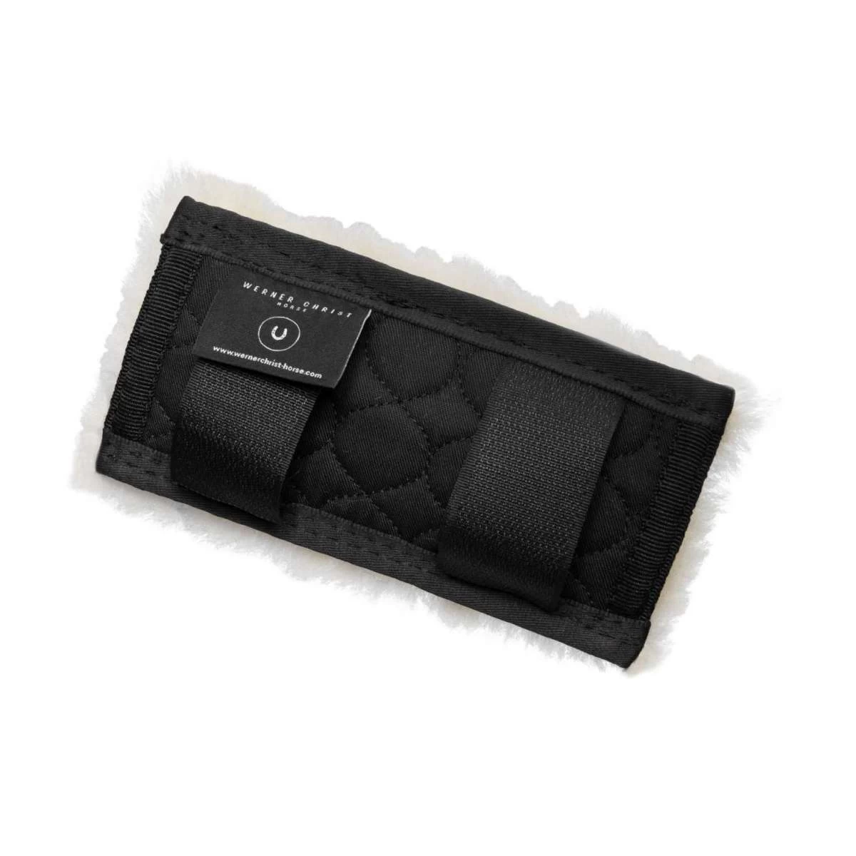 The Christ Lammfelle Curb Strap Cover has lambskin on the inside and attaches to the chin strap or curb chain with strong Velcro straps. The outside is reinforced with quilting and keeps its shape.
