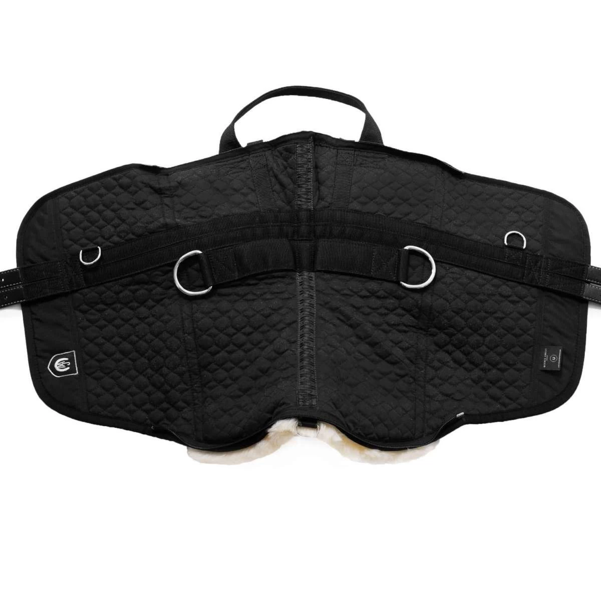 - Removable padding on the left and right of the spinal canal increases the seat comfort and protects the horse‘s back.