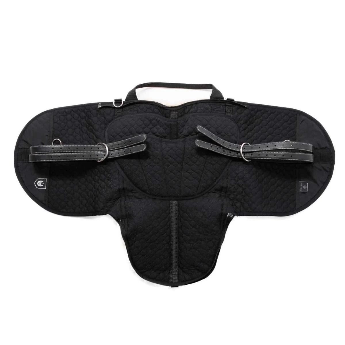 - Removable padding on the left and right of the spinal canal increases the seat comfort and protects the horse’s back.
