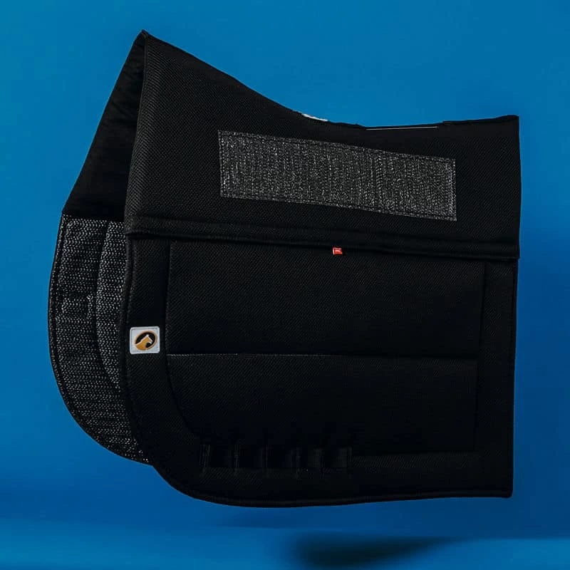 ECOGOLD’s CoolFit™ Saddle Pad combines a flexible shock absorption system with smart textiles, the most advanced moisture management and heat dissipation technology.