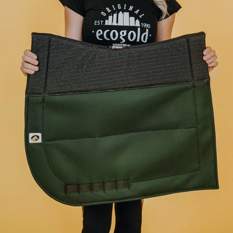 Improve your safety and protect your horse’s back with ECOGOLD’s original Secure Dressage Saddle Pad. It keeps the saddle in place for a stable ride.