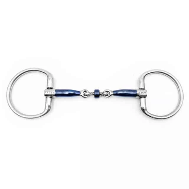 Jack is a double-jointed Sweet iron bit incorporating fixed rings /eggbutt side pieces.