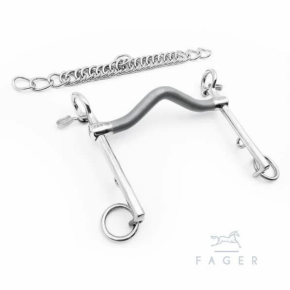 - Philip’s mouthpiece is a comfortable, high ported, back angled Weymouth in Grey Sweet iron. Â