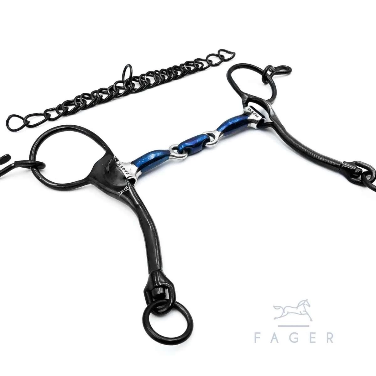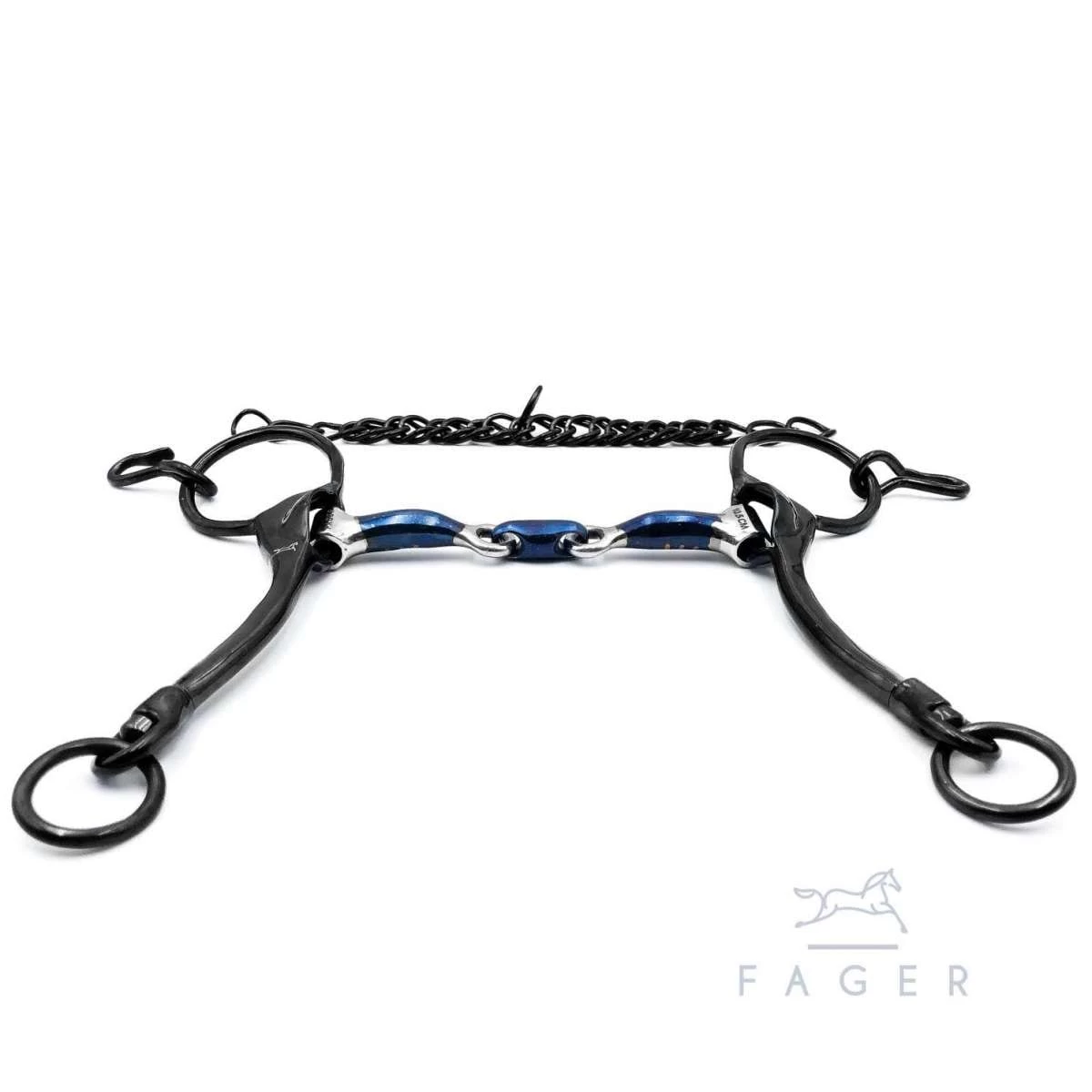 This is Victor, Fager´s new Icelandic bit with a sweet iron mouthpiece, and signature black shanks, hooks, and chain.Â