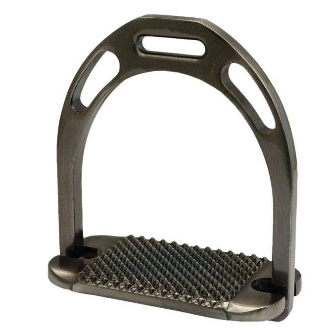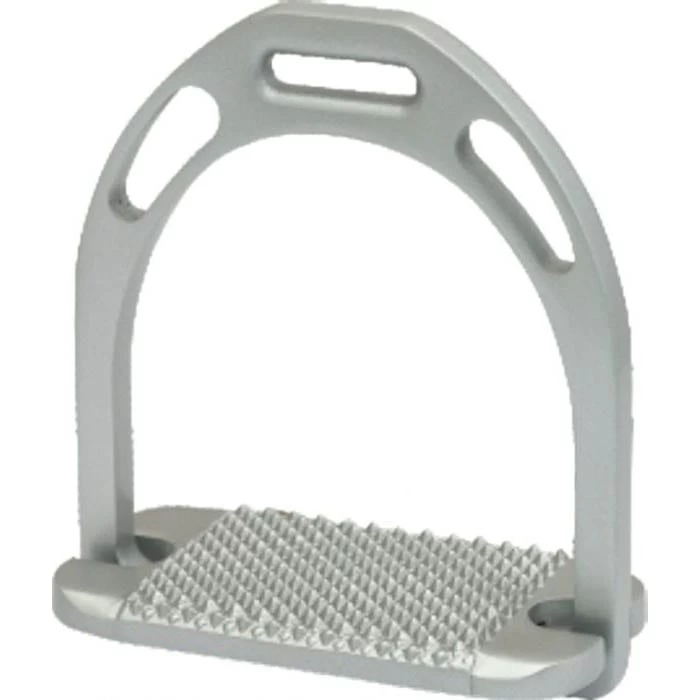 The Horse Tech Aluminum Stirrup Irons feature a wide track and cheese grater-style metal pads for enhanced grip.