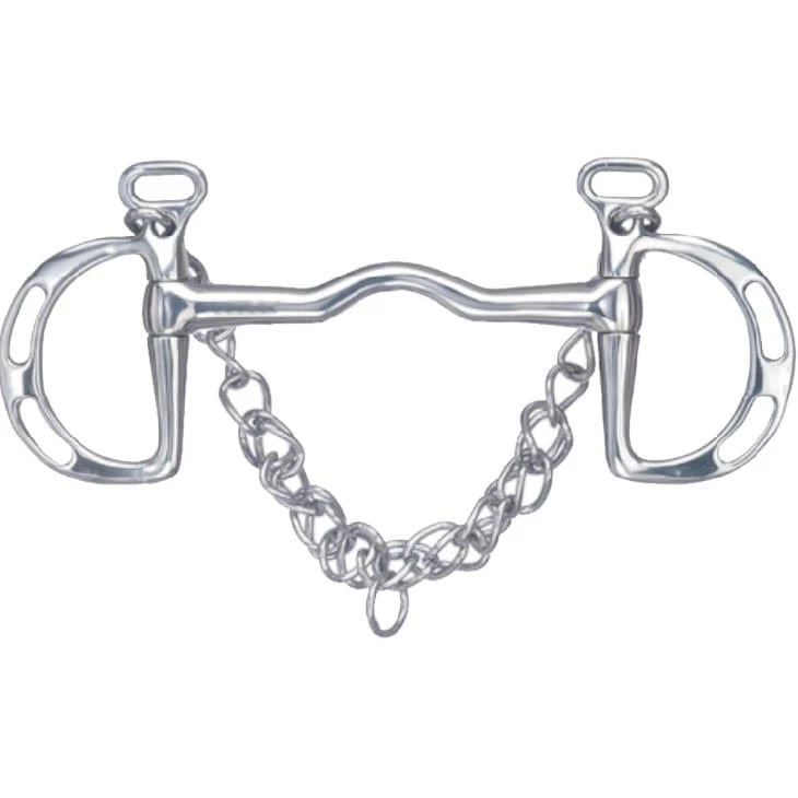 Kimberwick bit with 2 1/2″ dees and Uxter low port mouth, stainless steel.