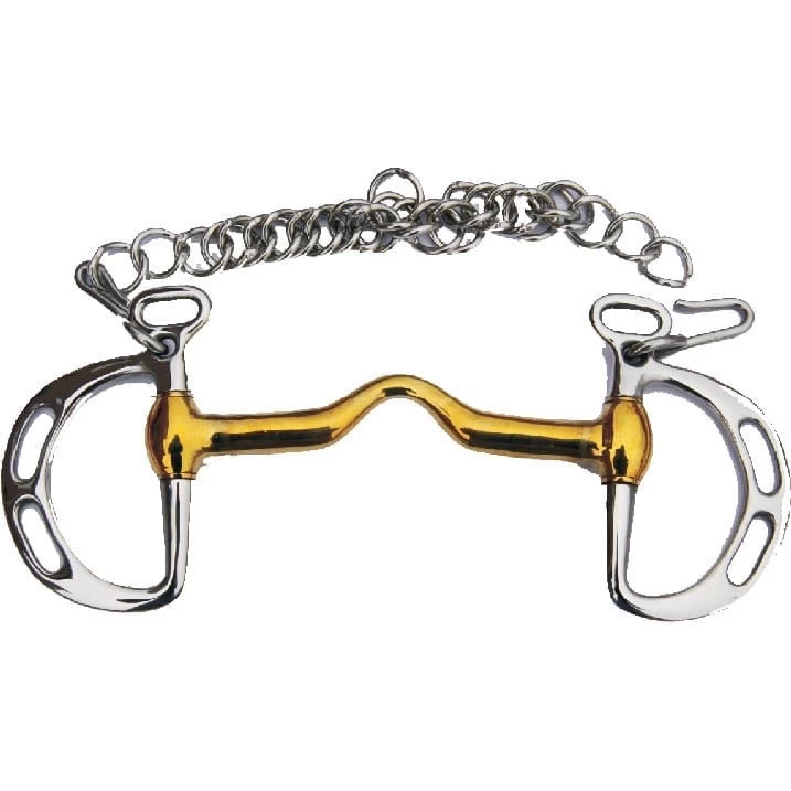 Kimberwick bit with 2 1/2″ dees and Uxter low port mouth, stainless steel.