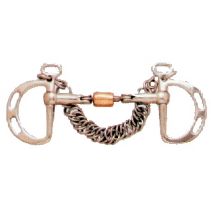 Slotted kimberwick with double hinged mouth and copper roller.