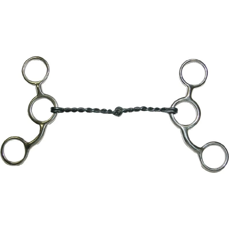 Junior cow horse thin twist gag bit with curved sweet iron thin twisted mouth. 5/16 gauge mouthpiece, 5″ cheeks helps to collect the horse strong effect with a lot of bite for more control. (Strong Effect).