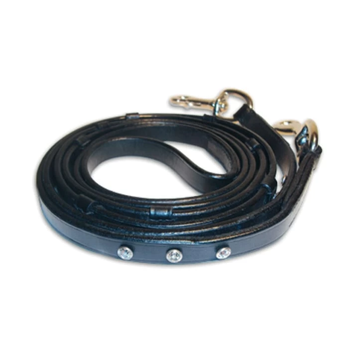 Our leather βDiamondβ reins take our classic leather reins and dress them up. They boast 3 white diamonds with matching hardware, and stoppers to enhance the riderβsβ grip.