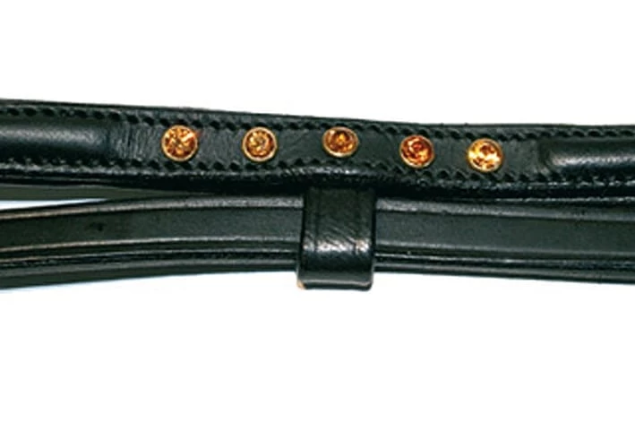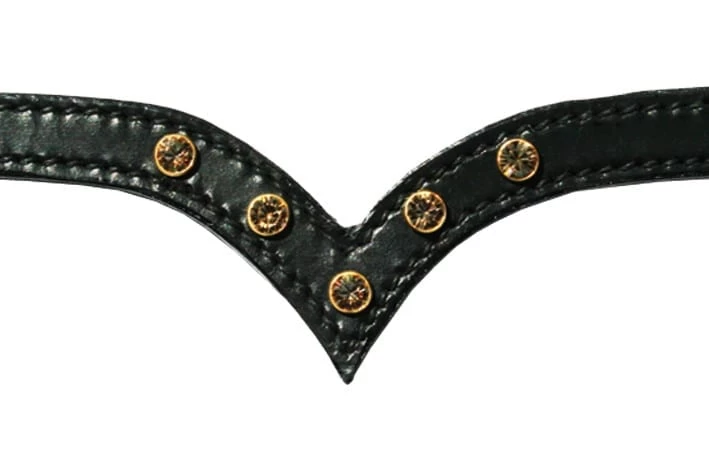 This Royal Bridle has the Gold Diamond design V shaped browband with a matching or plain black noseband.