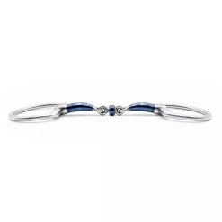 This Royal Bridle is underlaid with metallic silver padded leather on the browband and noseband. The stitching on the browband and noseband is silver to match the padding.