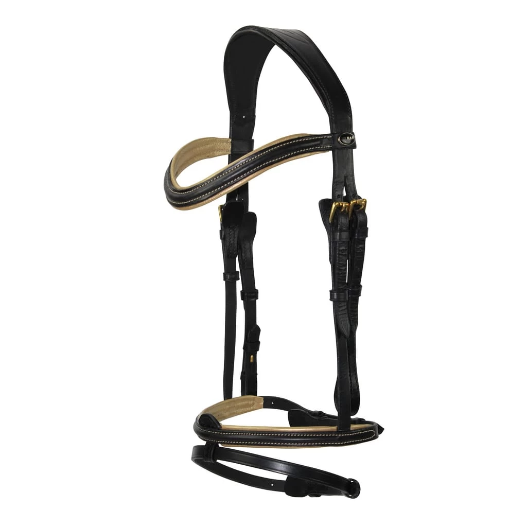 - The noseband has been integrated with the headstall with buckle guards to avoid excess rubbing or pinching to the horse. It also allows for quick access to interchange and customize pieces of the bridle. Specific nosebands in this collection may also come in a glossy black option.