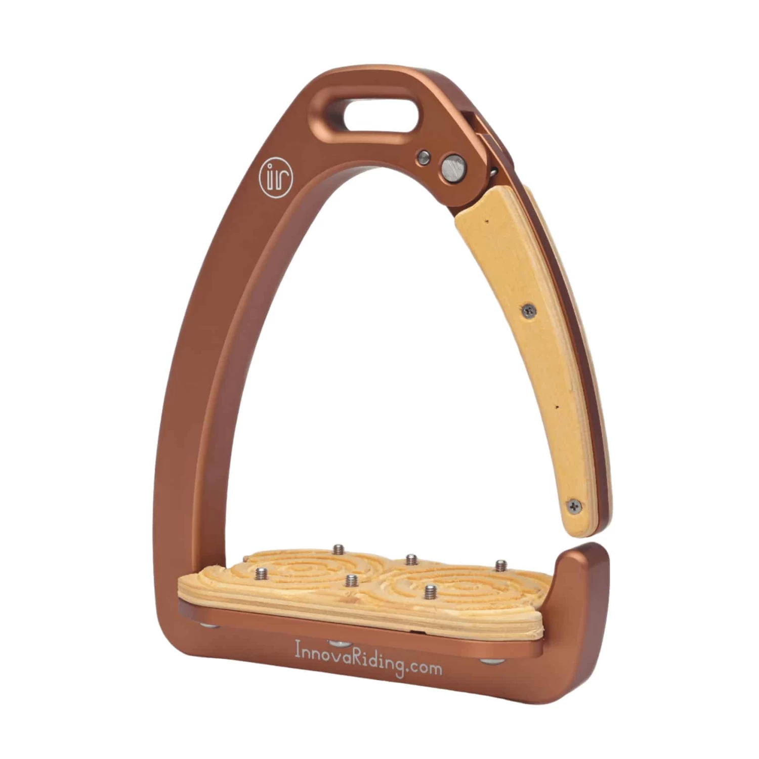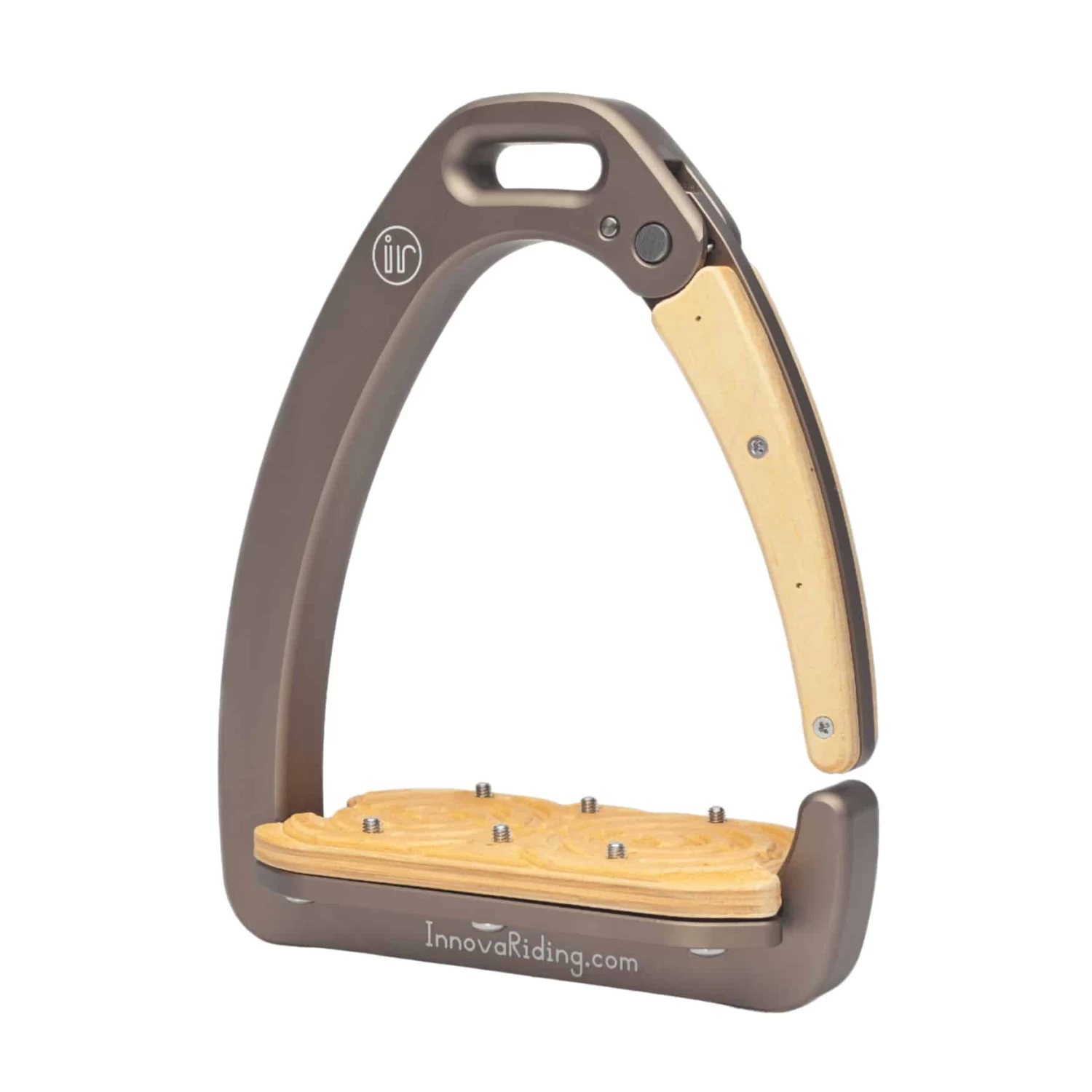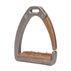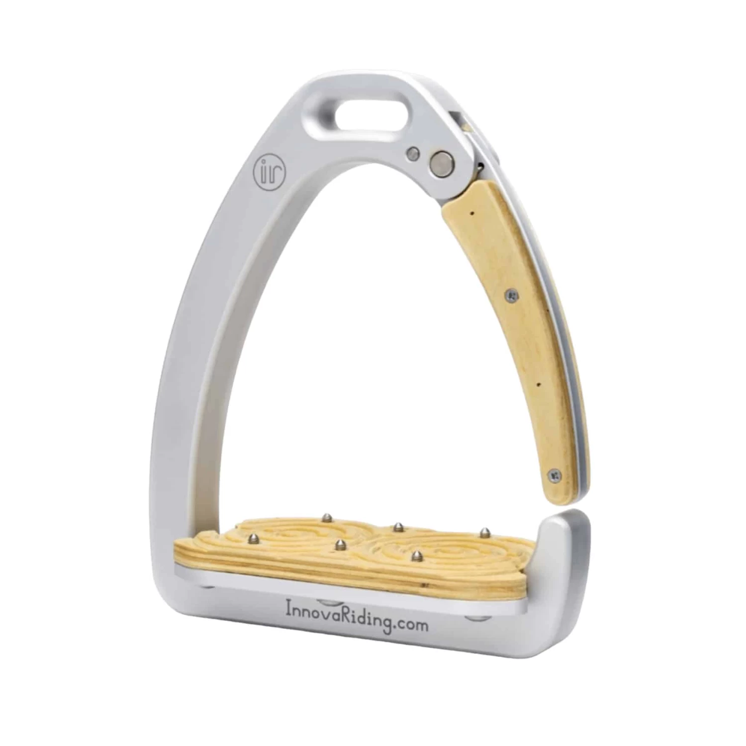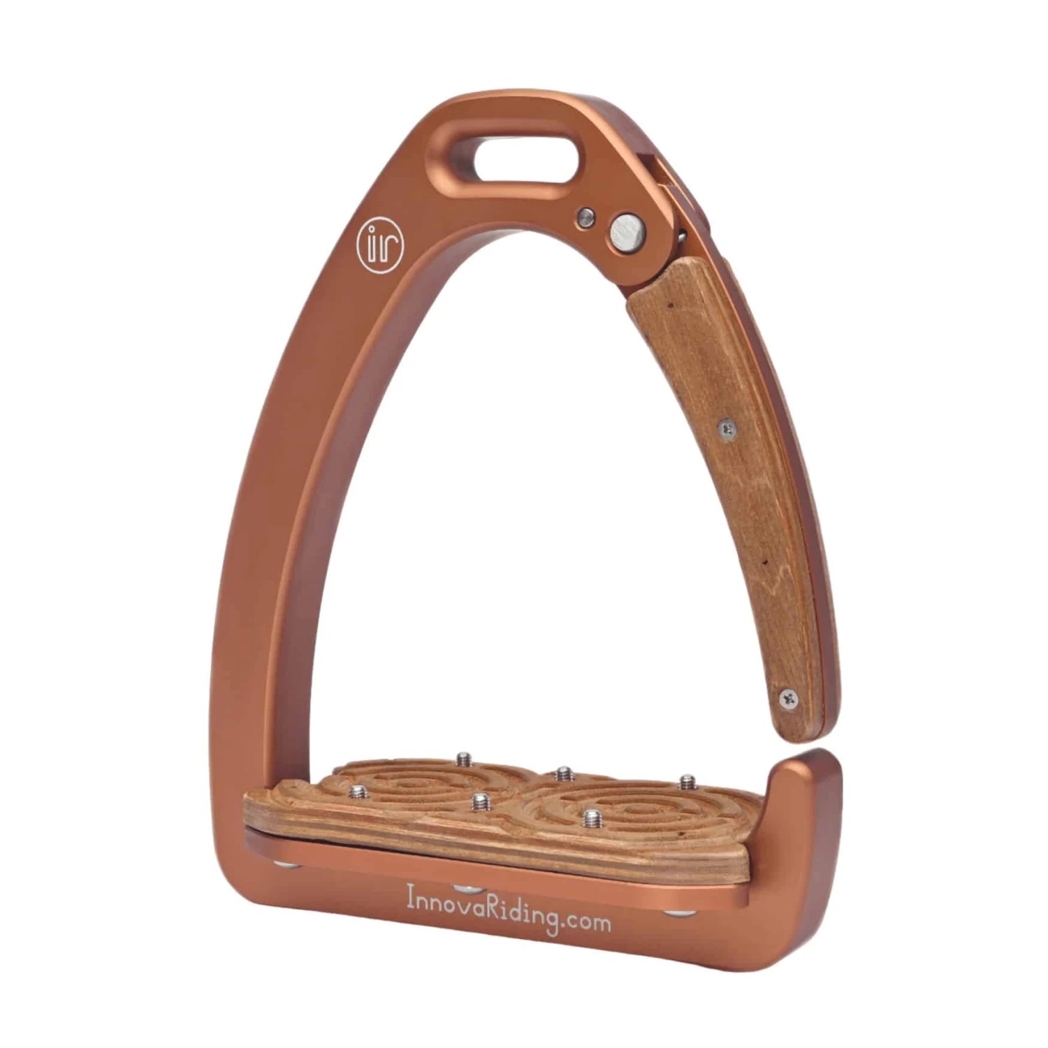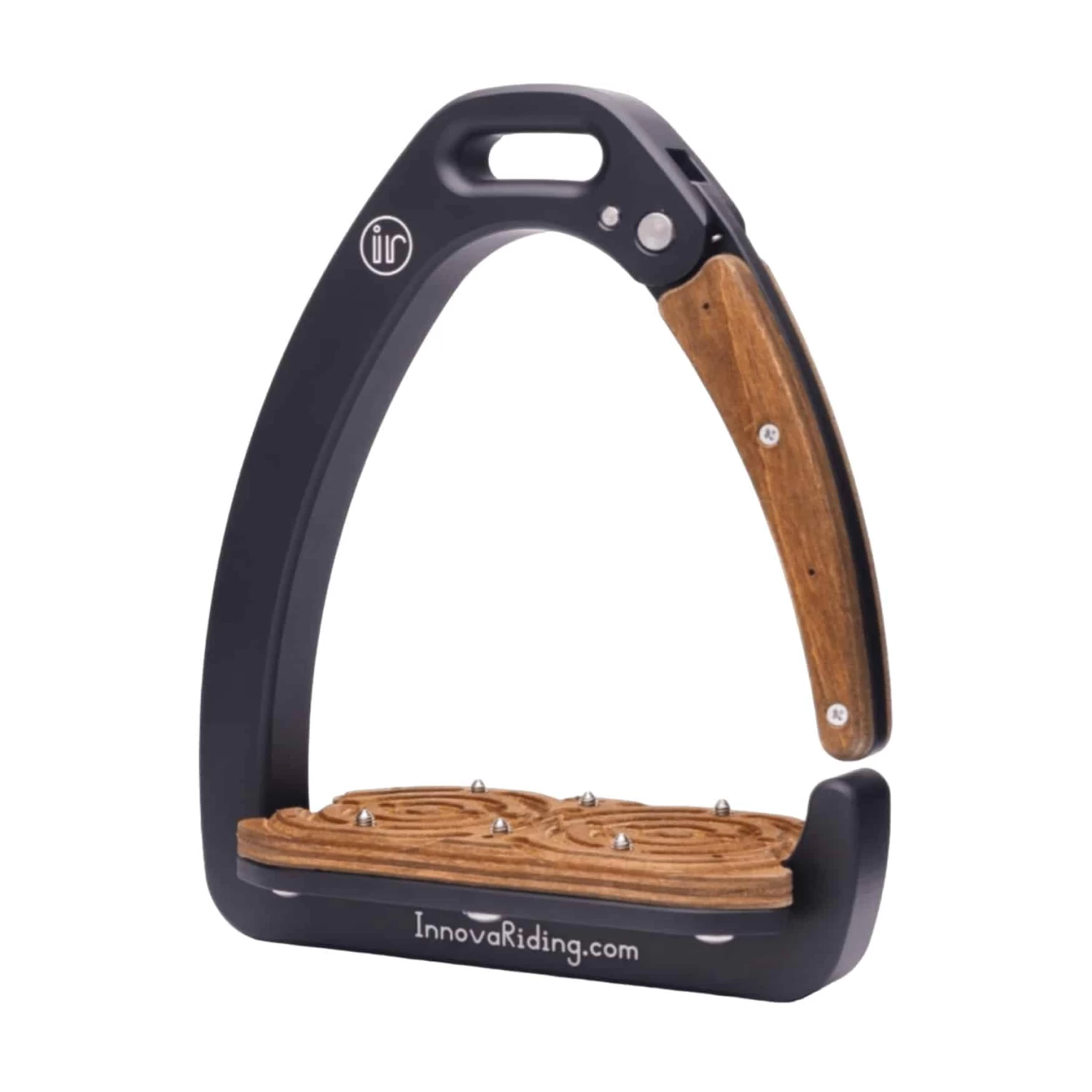 Our stirrups are specially created to make you feel safe while riding. In case of need, the mobile part opens, allowing the foot to be released from the stirrups, and then automatically returns to its closed position.