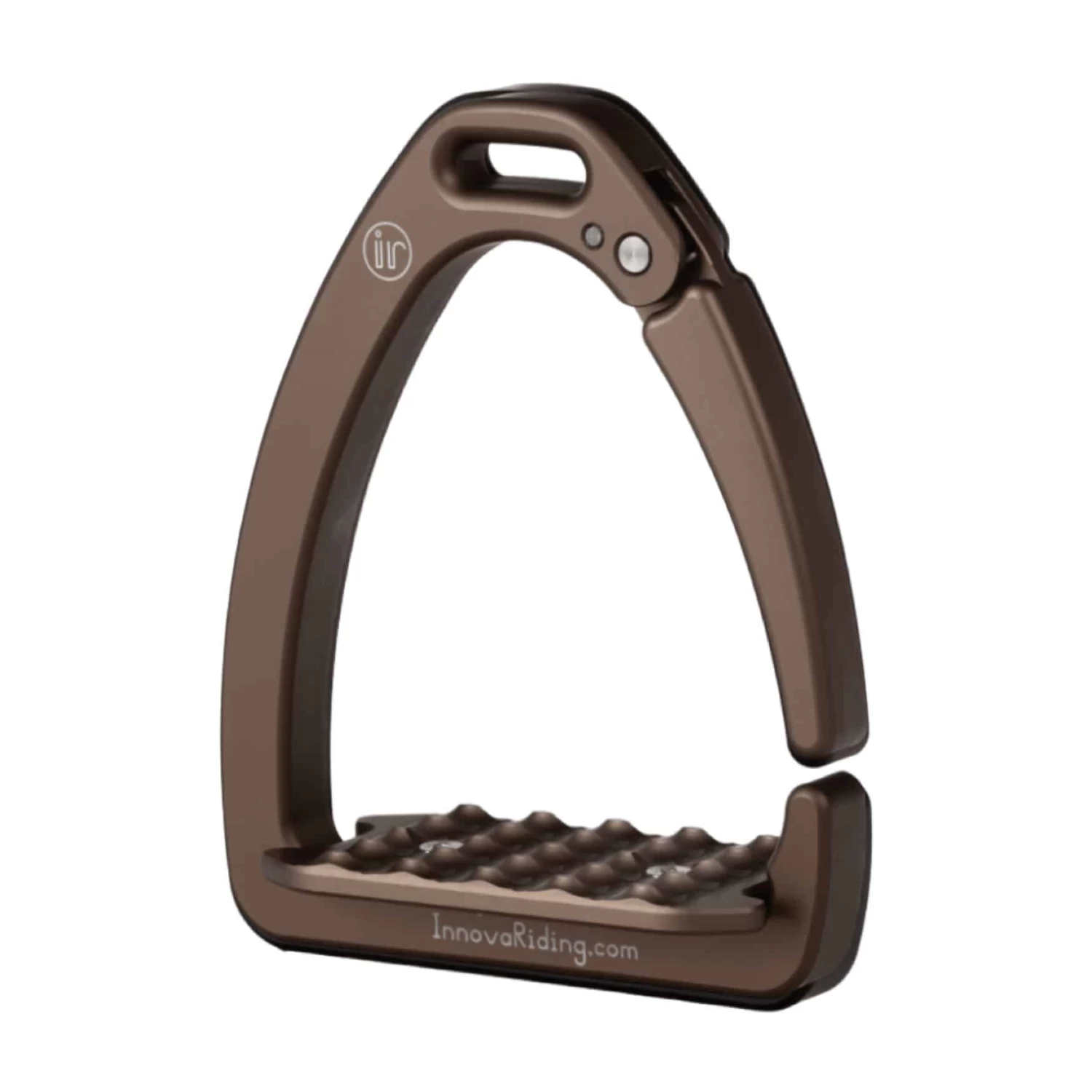 Our stirrups are specially created to make you feel safe while riding. In case of need, the mobile part opens, allowing the foot to be released from the stirrups, and then automatically returns to its closed position.