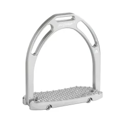 The Anatomic is the latest evolution of the JIN technical stirrup. Its patented, ergonomic foot bed provides additional stability to the the rider’s foot, to aid in side-to-side pronation and to provide additional support for the ankle and knee joints. The stirrup pad, inclined at 4 degrees from back to front, ensures excellent grip and maximum stability. The wide footpad distributes the rider’s weight over a greater surface area, increasing circulation to the toes, and features a wider foot bed tread and larger tread spikes.