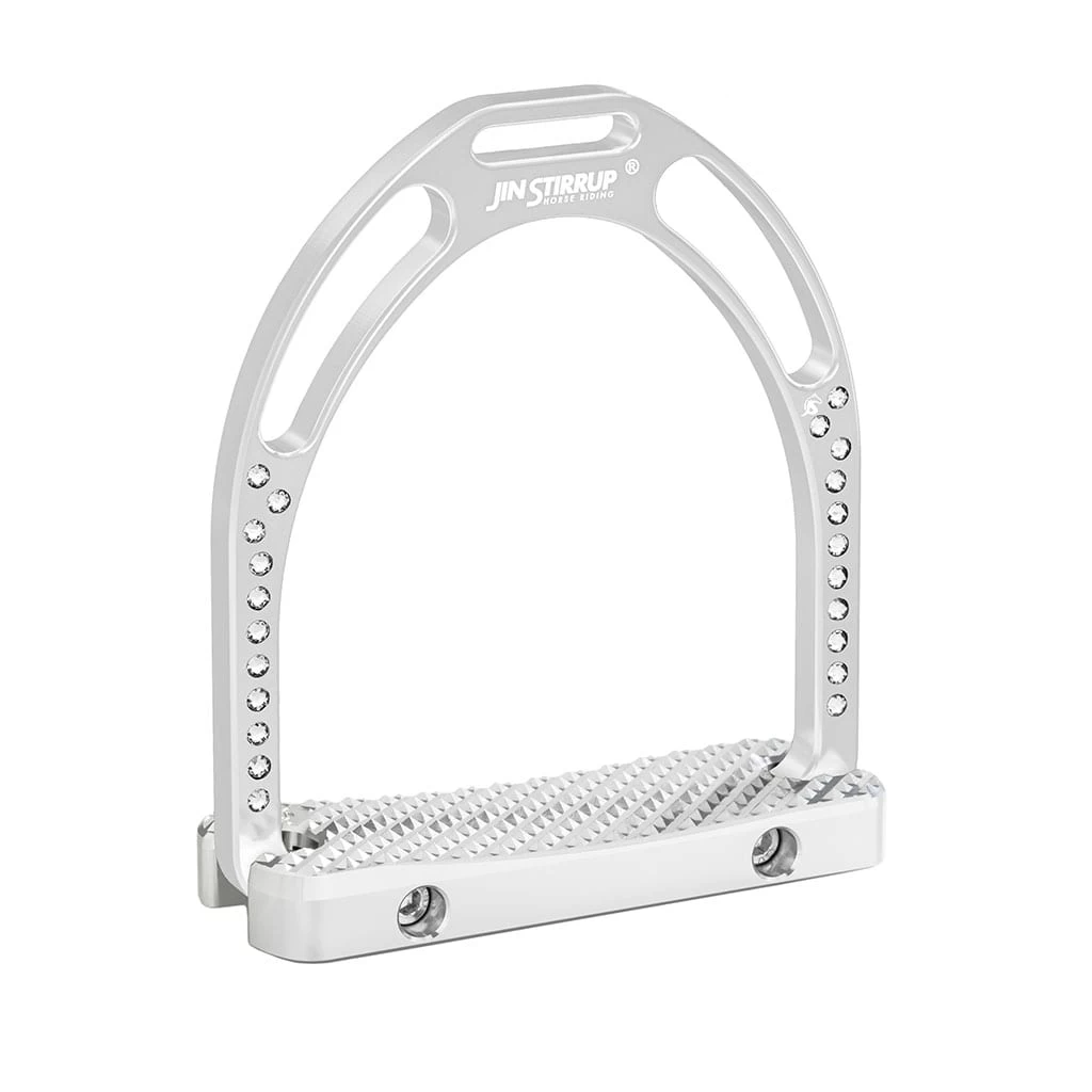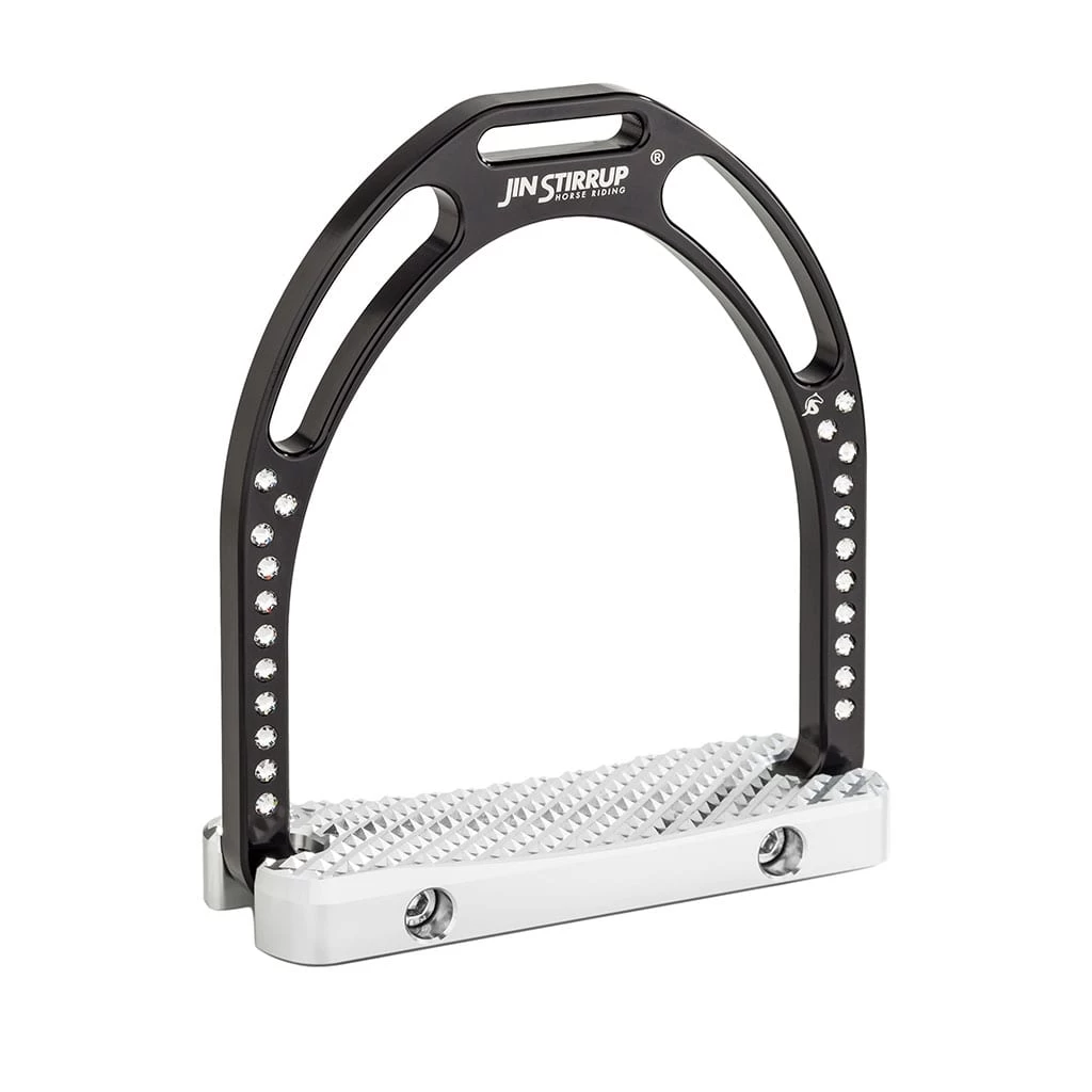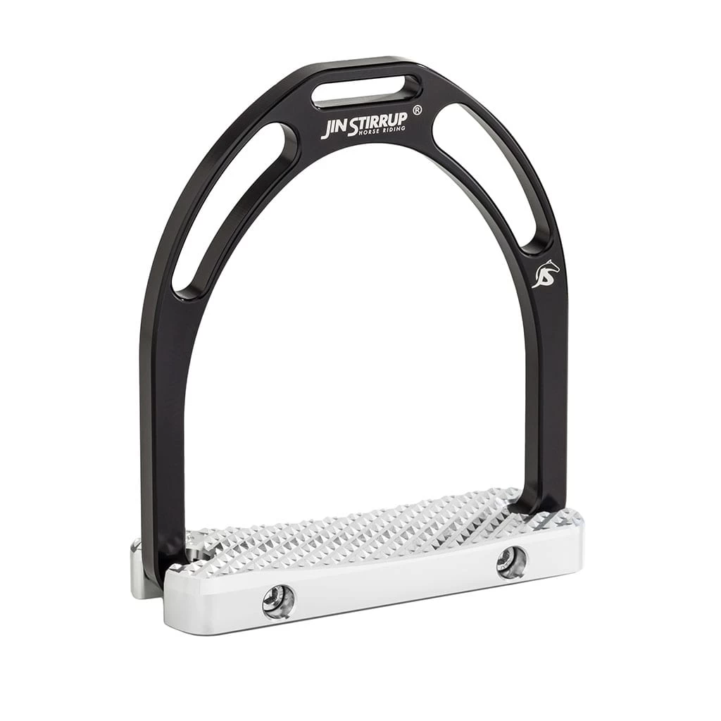 The JIN Dressage Stirrups are a brand technical stirrup, designed specifically with the dressage rider in mind. Like the Anatomic, its patented, ergonomic foot bed provides additional stability to the outside of the rider’s foot to aid in side-to-side pronation and to provide additional support for the ankle and knee joints. The JIN Dressage Stirrups have a larger, thicker foot pad, resulting in more weight when compared to other JIN models.