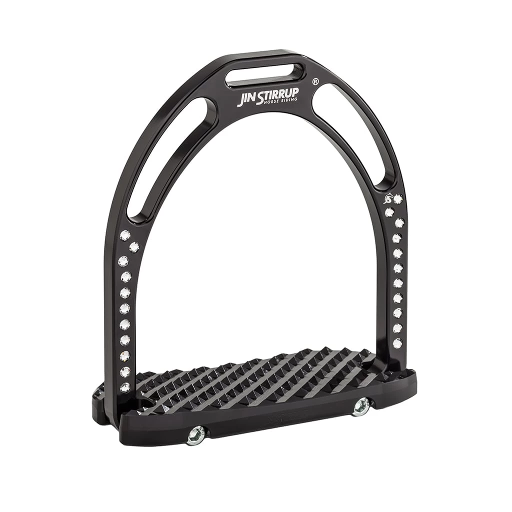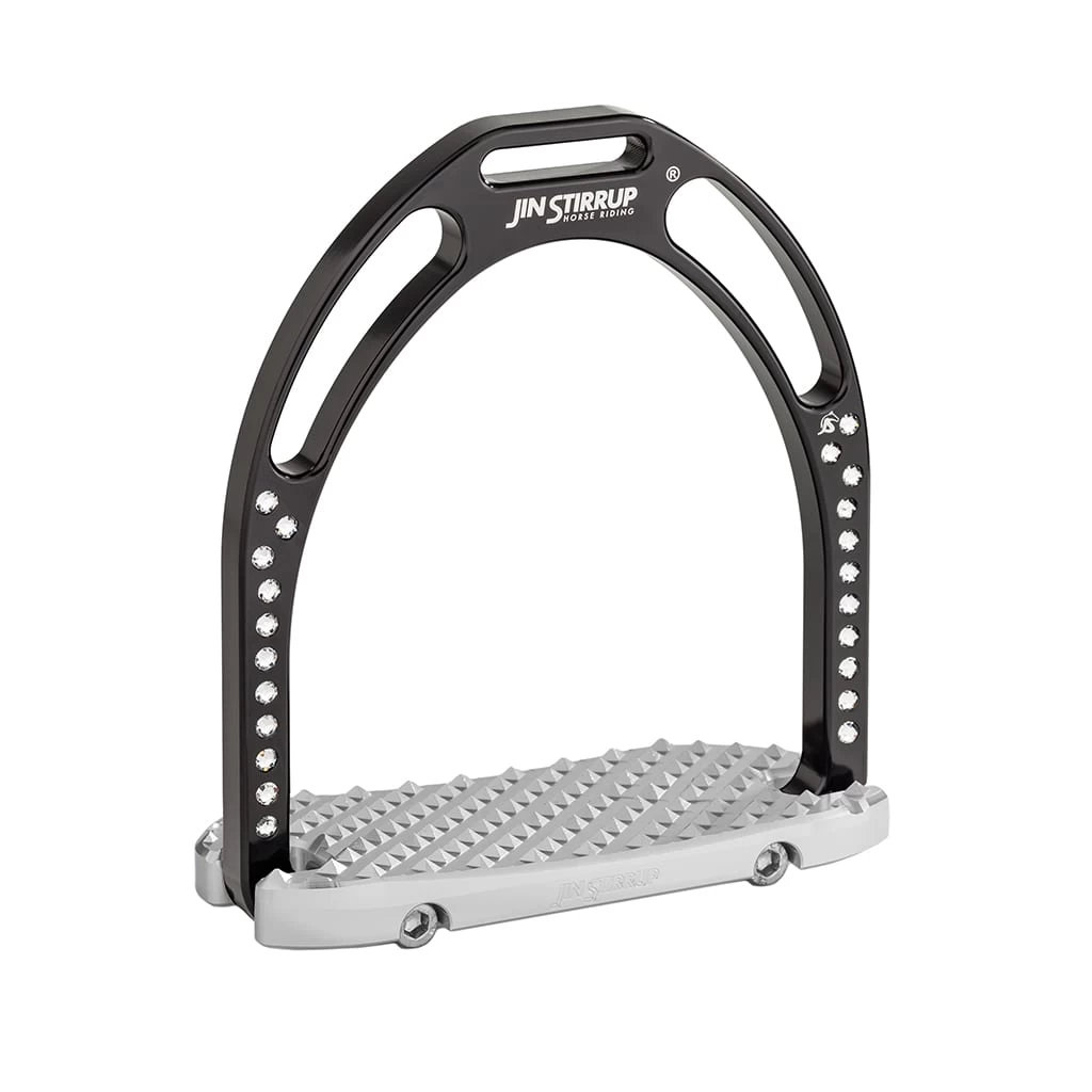 The JIN Precious Stirrups are constructed of top quality aluminum. The ergonomic shape of the stirrup pad, inclined at 4 degrees, and wide foot base guarantees excellent grip and maximum stability.Â