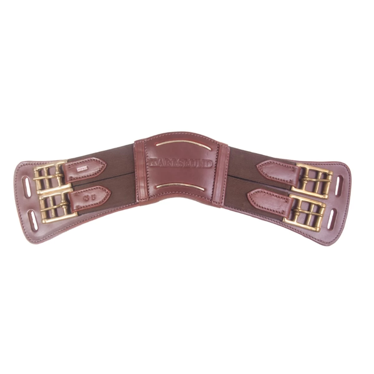 An anatomical leather girth for optimal freedom of movement and good pressure distribution. Elastic in both ends and holes for girth straps. Made from first grade leather.