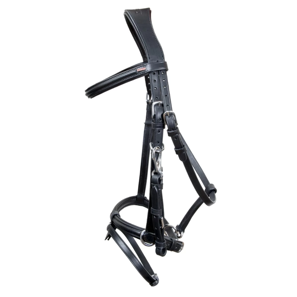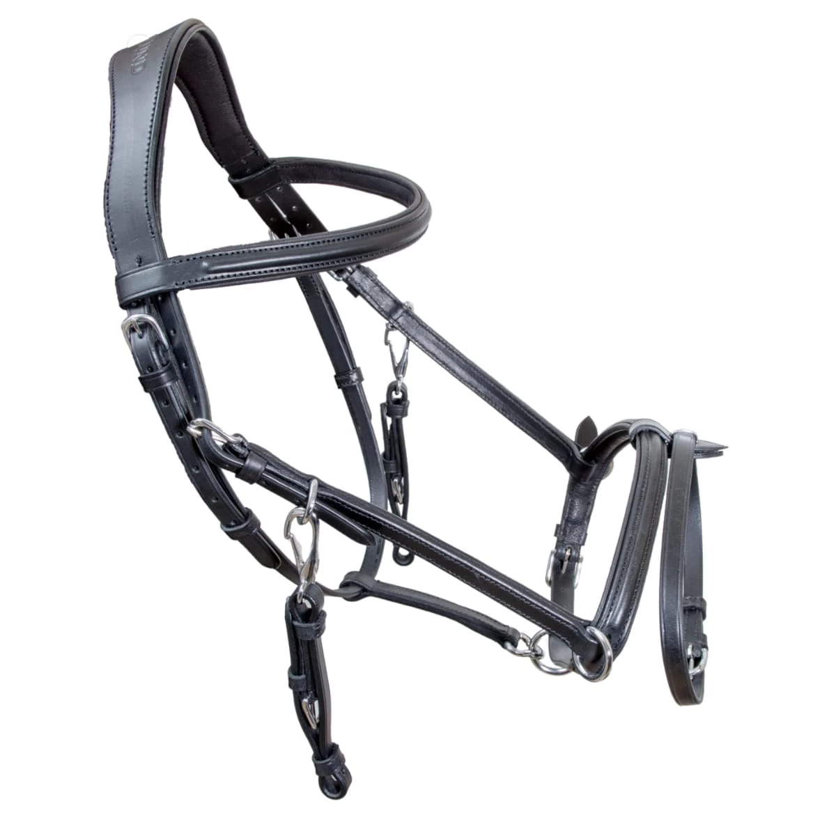 The Karlslund Combo bridle is made from high quality leather, with an anatomical crown, and many other interesting features. It can be used as a regular bridle, and by easily removing the bit and the lower nose band, it transforms into a halter and bitless bridle.