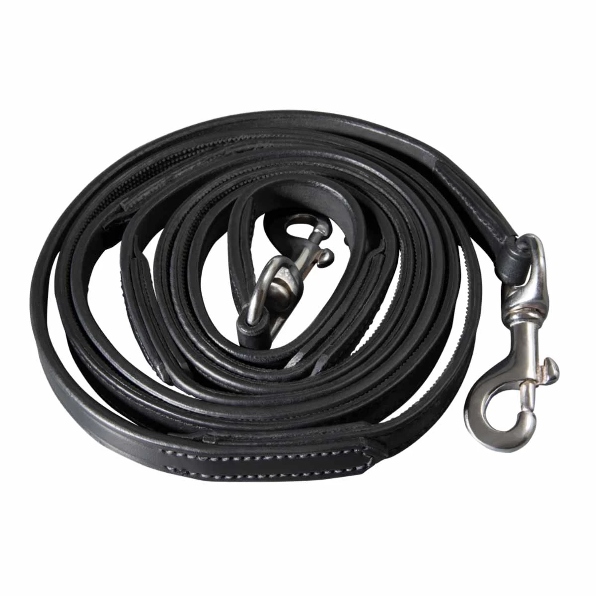 Reins with dimpled rubber on one side, and leather on the other. This gives a great contact to the horse, and a strong grip on the reins.
