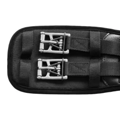 - Breathable girth made of resistant mixed fabric coloured in black