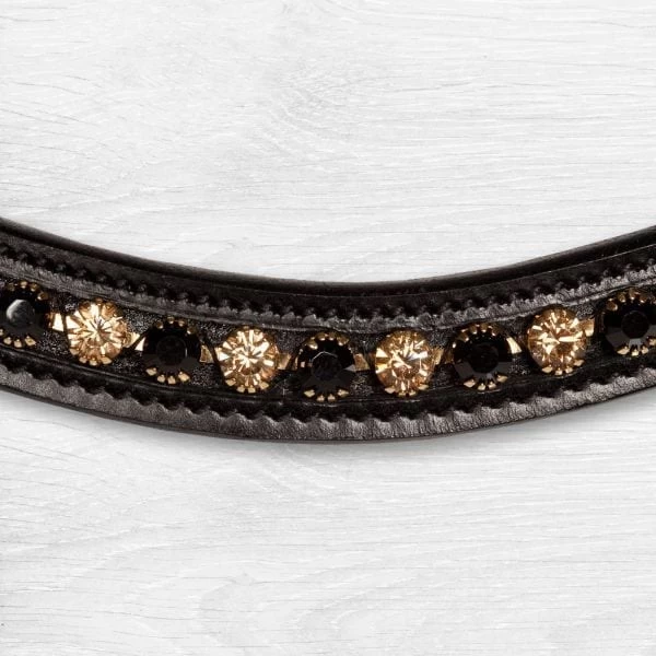 Curved Black Leather browband with Black and Gold Ultrashine Crystals.