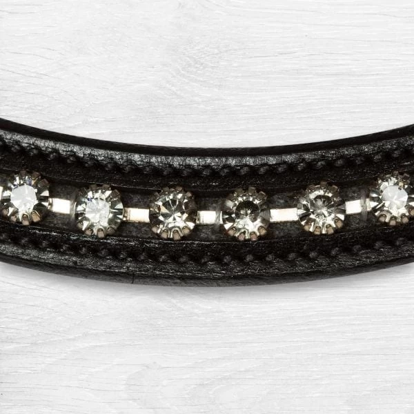 Curved Leather browband with Grey crystals.