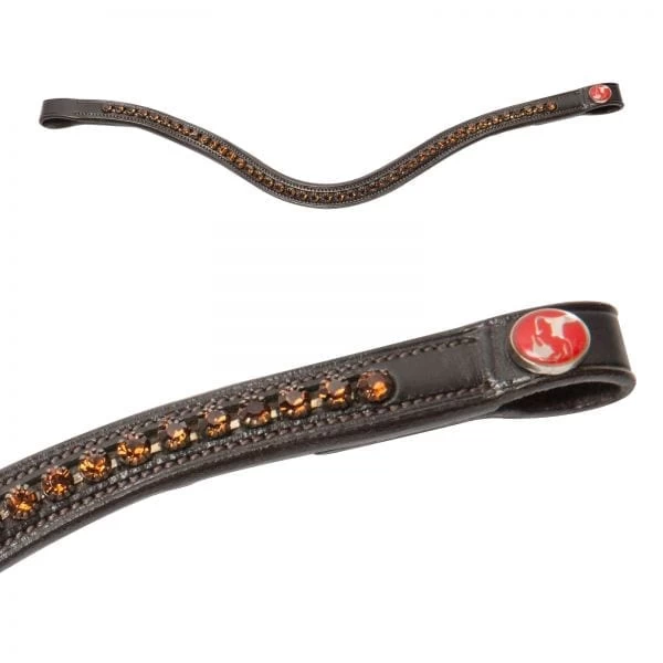 Curved Leather browband with Brown Crystals.
