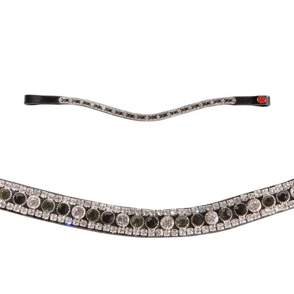 Curved Leather browband with White, Dark Grey, and Black Crystals.