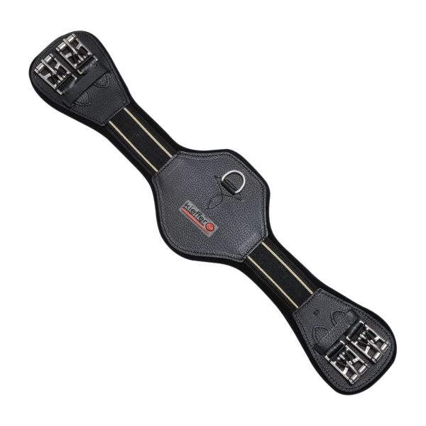 On the top, the girth has a sturdy strap that provides stability and keeps it in shape. Leather applications on the sides and in the area of the belly pad further stabilize the girth and ensure that the buckles as well as the central D-ring are not even remotely noticeable to the horse.
