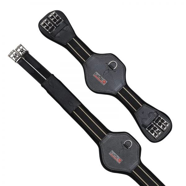 - Large roller buckles with elastomer band for easy girthing and secure re-girthing from the seat