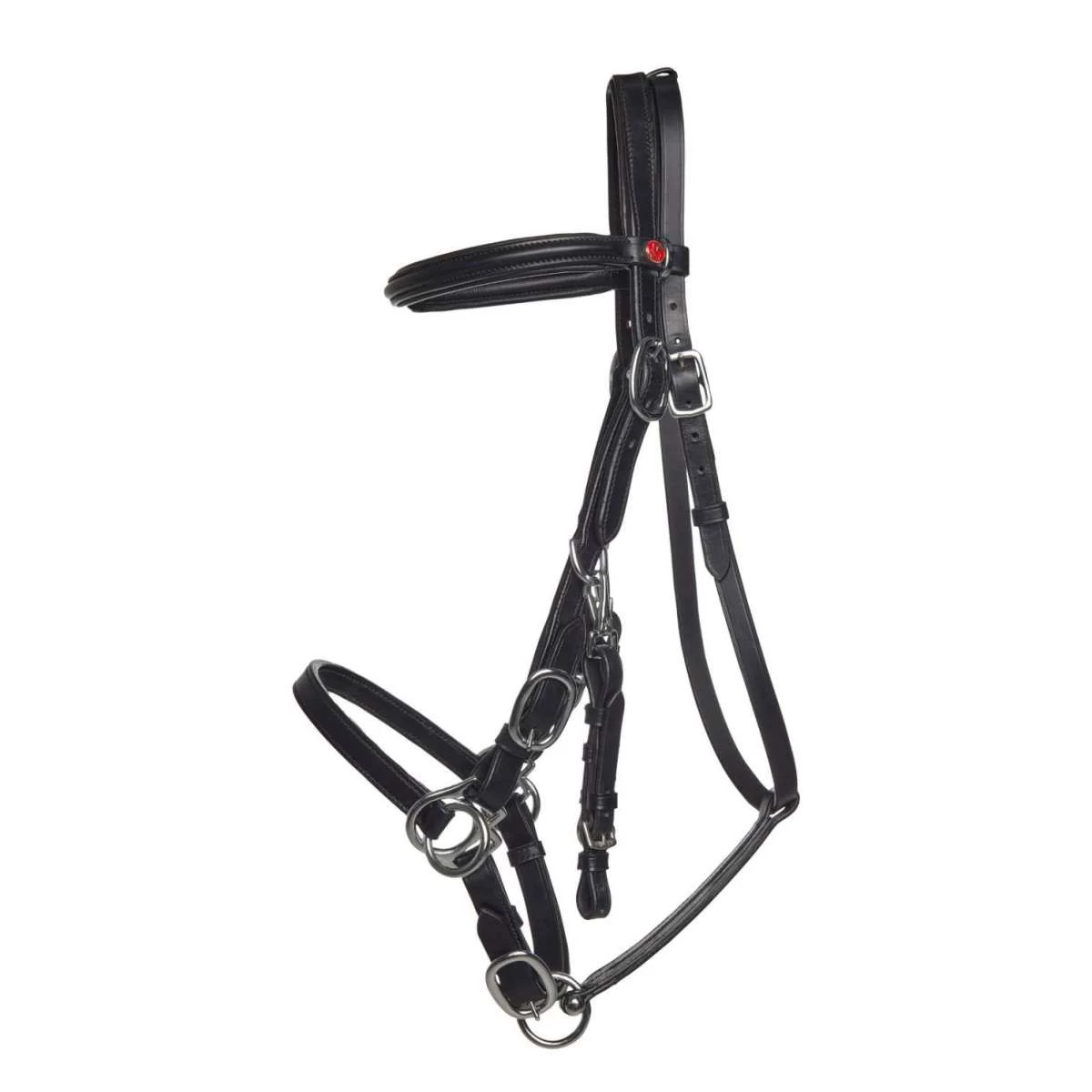 This multi functional bridle was developed in close partnership with LK Equestrian Sports and horse trainer Stefan Schneider for starting young horses and can be used both with and without a bit.