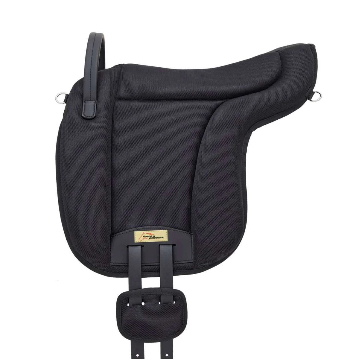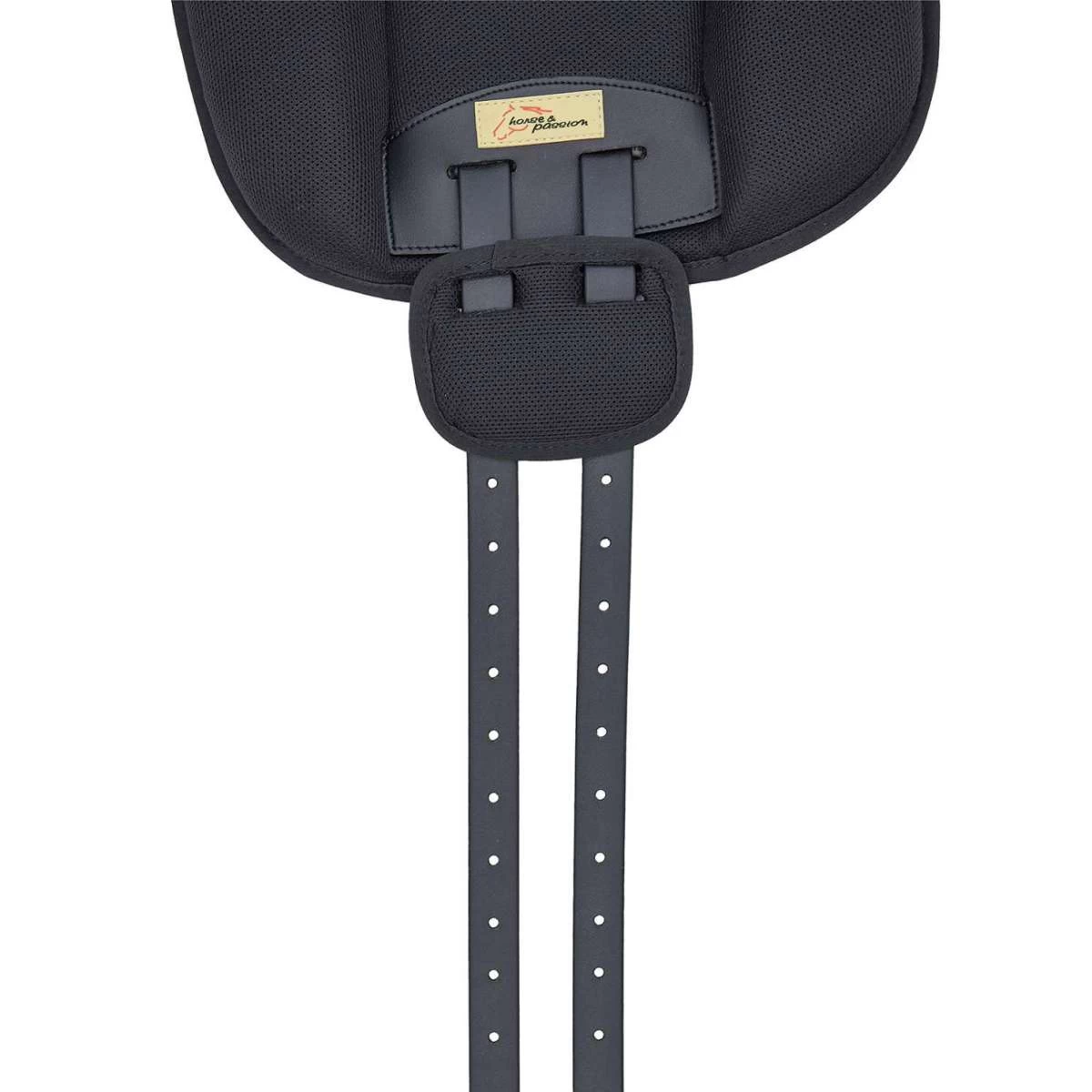 The bareback pad consists of a softly foamed core, is covered with breathable, easy-care mixed fabric and has a very good hold on the horse’s back. The grab handle, the bottom of the pad as well as the girth straps are made of robust synthetic leather to protect against wear and tear. A stirrup attachment was deliberately omitted to avoid unpleasant pressure peaks. Bareback Pad Balance can be used in combination with any commercially available short girth with two buckles.