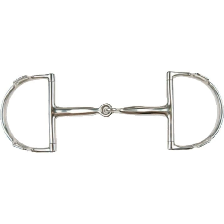 Metalab hunter dee ring snaffle bit with lifter rings made of stainless steel.