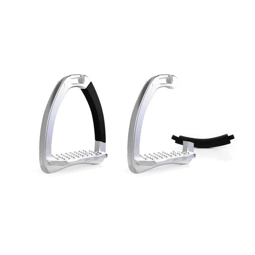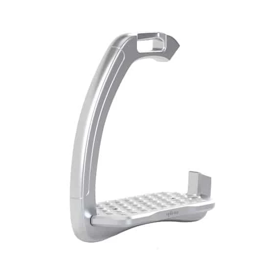 The Ophena A has been carefully designed to provide flexibility and soft dampening. Right below the tread is a cushioning element to provide comfort for your knees, without disturbing the design. Further, the entire stirrup flexes to absorb harder impacts.