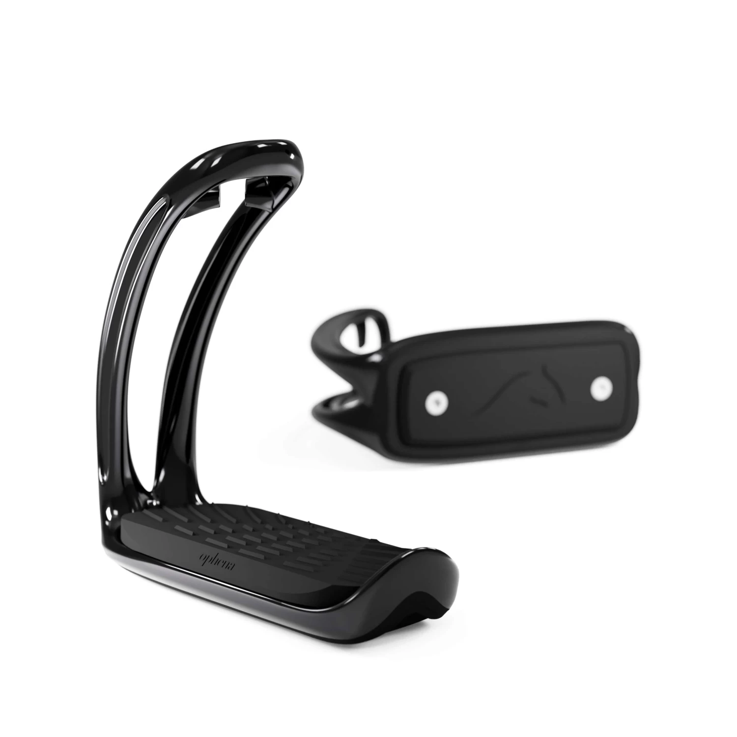 Ophena S Magnetic Safety Stirrups have been developed for highest safety. Its open design minimizes the risk of your feet getting caught. And the magnetic system releases you safely in case of a fall.