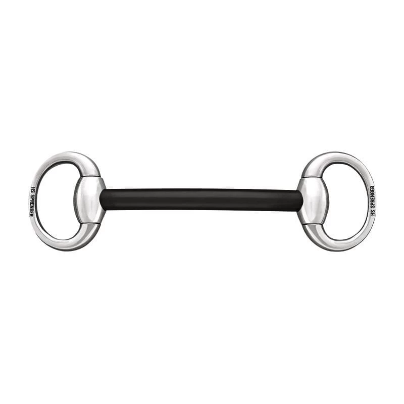 This unjointed bit with a straight, pole mouthpiece disperses pressure on the whole tongue width and the lower jaw bones. The bit may help when riding horses that tend to back off from the riders aids, for example when cantering to a fence. Eggbutts are suitable for horses with sensitive corners on their mouths, as they prevent them from being pinched which can happen with loose ring snaffles.