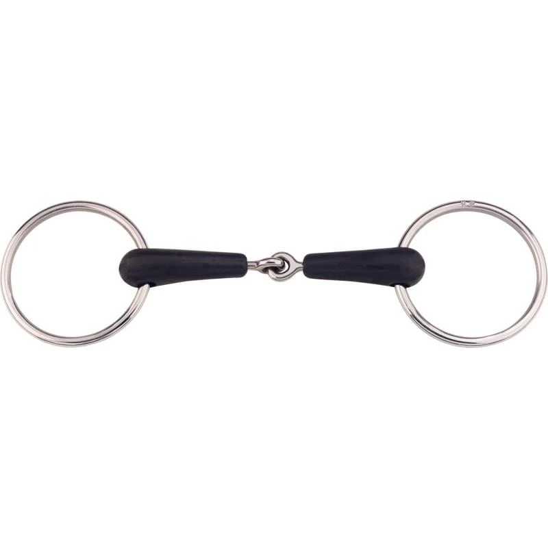 Rubber bits from Sprenger are made of soft but tough rubber that has a Stainless steel cable inside to reinforce the mouthpiece. Rubber generally has an “eraser-effect“. It is therefore important that horses are salivating and chewing well when using these bits. If the horse does not produce enough salivation the rubber bit will be uncomfortable. Different from pure metal bits there is the danger of the rubber being easily bitten through when the bit is not attached correctly and gets into contact with the teeth.