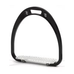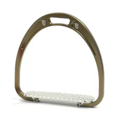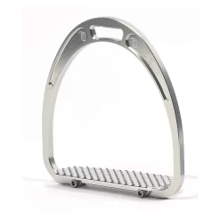 The tread has been designed in collaboration with professional jockeys and its grip has been conceived so to provide riders with the best adherence, despite the reduced size of the tread. If compared with other stirrups of the same category, a difference in the tread width can be noticed.