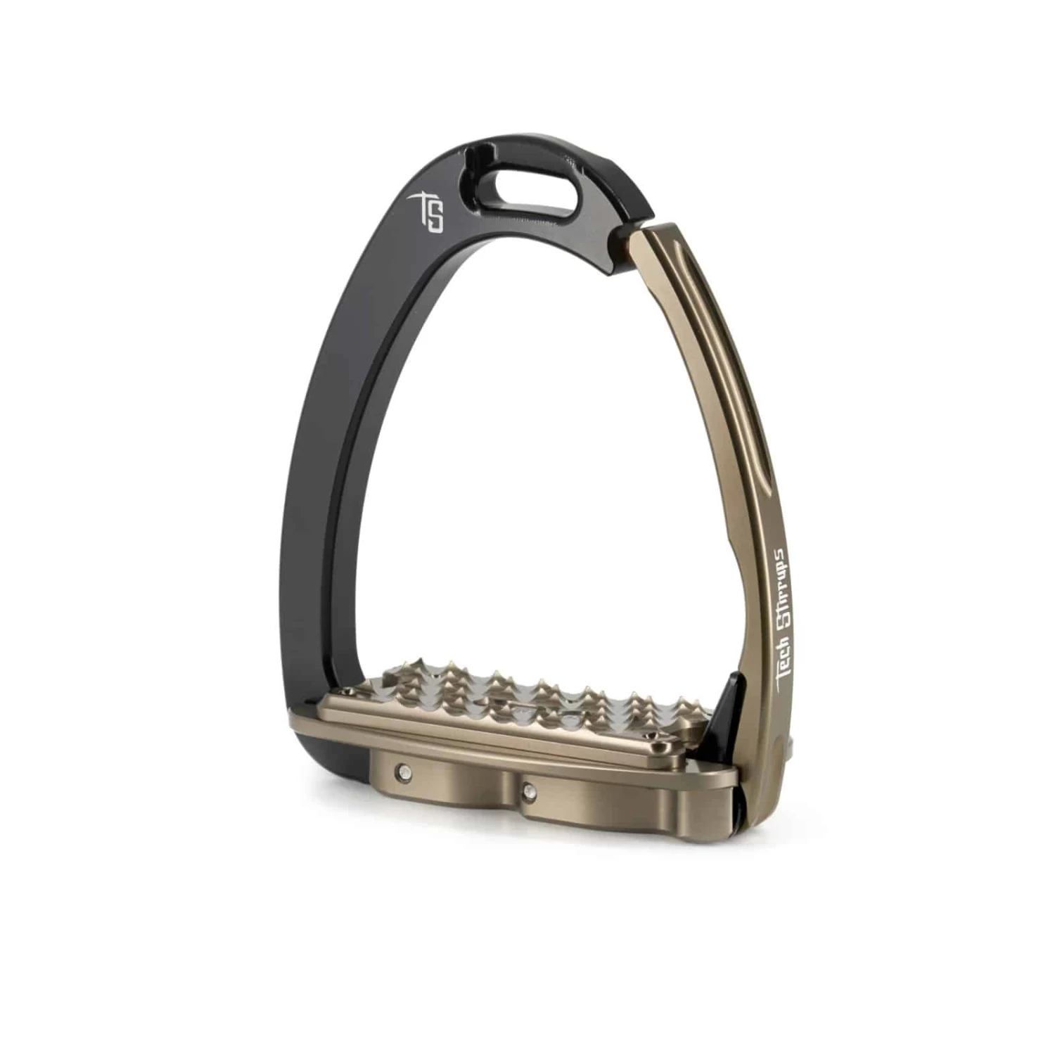 Thanks to the Tech Stirrups safety mechanism, the moving stirrup brand can open in case of fall, and then return to the closed position automatically.